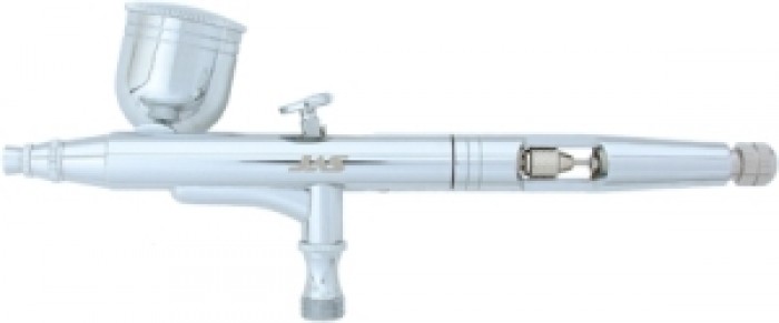 Аэрограф Jas 1114 простой и надежный, отличие от аэрографа Jas 1113 - съемная емкость на правом бок. Боковая подача не перекрывает обзор и позволяет работать под любым углом к поверхности. Двойное независимое действие, сопло 0.3