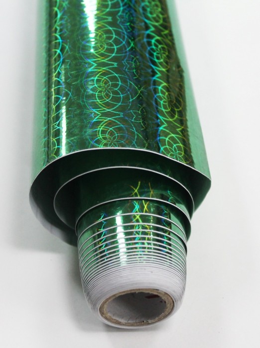 Пленка самоклеящаяся ш. 45см*1м (LB-080C)голография Зеленая цветы в квадрате (продажа от 50см)