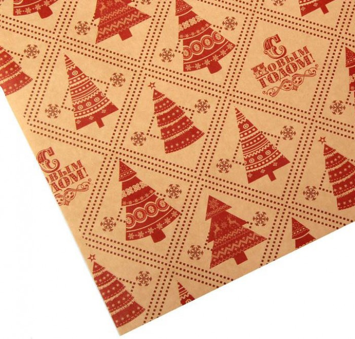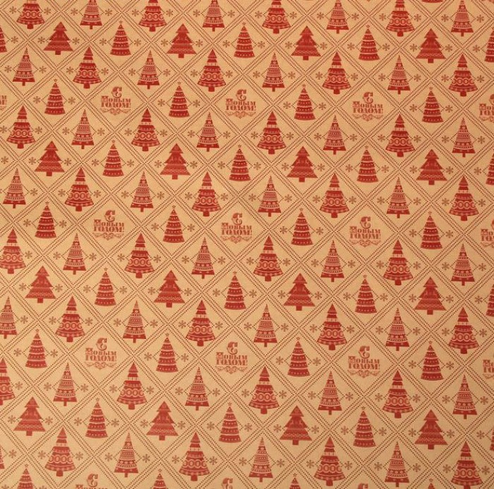 Бумага упаковочная крафт "С новым годом", елочки