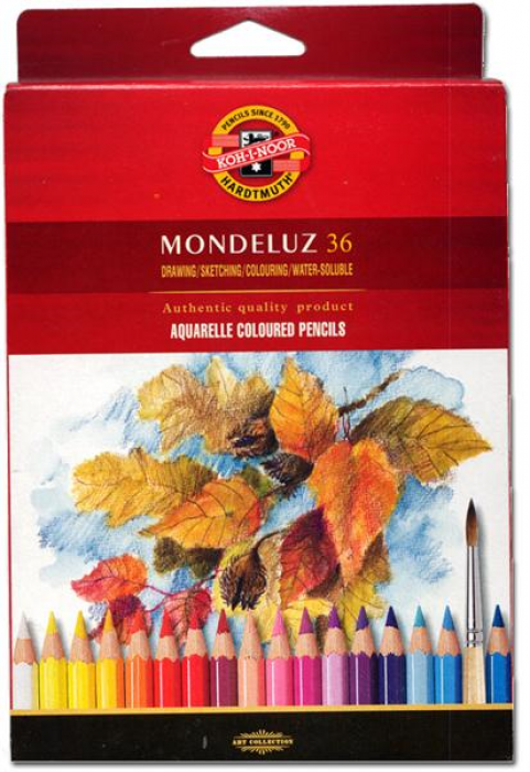 Набор цветных акварельных карандашей MONDELUZ производства компании KOH-i-NOOR – это 36 профессиональных карандашей премиум-класса, упакованных в картонную упаковку. Карандаши MONDELUZ отличаются высокой концентрацией пигмента и превосходной растворимостью. Карандаши могут использоваться для рисования как влажным, так и сухим способом. Всего несколько капель воды, нанесенных кистью на ваш рисунок, придадут ему эффект акварели. Цвета – яркие и насыщенные, мягко ложатся на бумагу и не выгорают на солнце. Произведены с применением только высококачественных натуральных материалов.