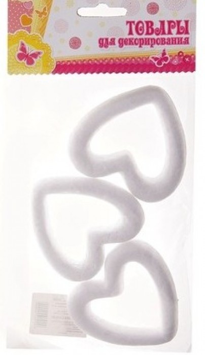 Фигура из пенопласта Набор сердец контур 3шт.