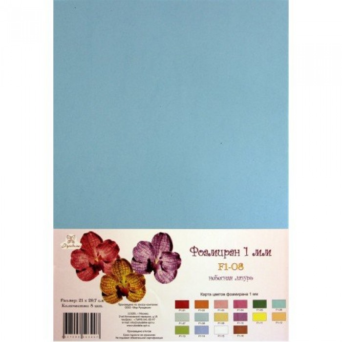 Лист фоамирана (вспененной резины), толщина листа 1 мм, размер 21*29.7 см. Резину можно резать ножницами, ножом, формировать из нее разные украшения, клеить. Вырезанные детали практически не имеют веса, очень легкие. Прекрасно подходит для детского творчества (от 3 лет).