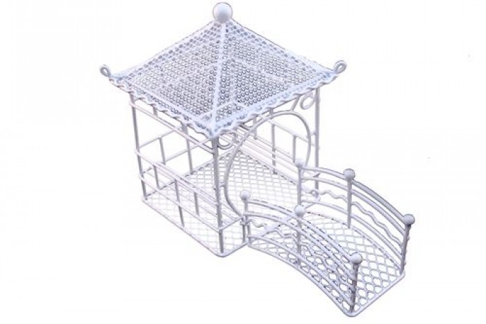 Металлическая беседка с мостиком белая 15,5*8,5 Мостик 7,5*5см