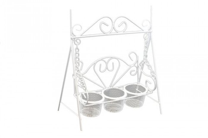 Металлические качели белые с тремя плетеными горшочками