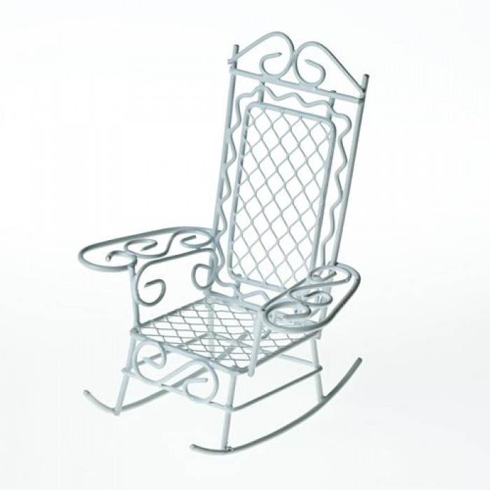 Металлическое миниатюрное кресло-качалка с подлокотниками и высокой ажурной спинкой. Размер 8,0*7,5*10 см.