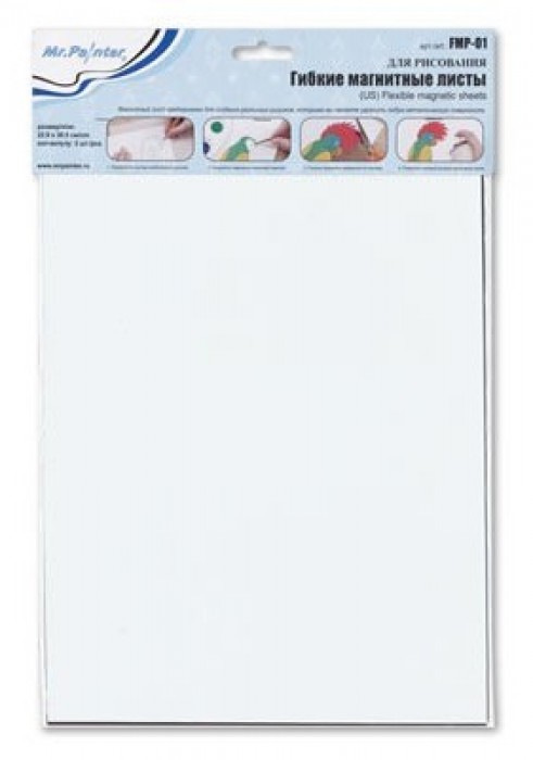 Магнитный лист FMP-01 предназначен для создания различных рисунков, которыми вы сможете украсить любую металлическую поверхность. Рисунок можно наносить акриловыми красками. Для получения более насыщенного оттенка краску можно наносить в несколько слоёв. Магнитные листы не токсичны, не подвергаются коррозии, легко поддаются механической обработке, разрезаются ножом или ножницами, экологически безопасны, могут подвергаться существенной деформации без потери магнитных свойств.