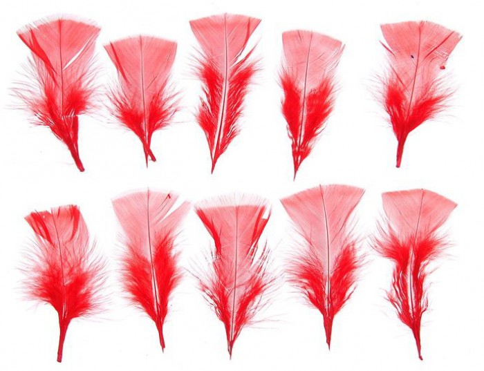 Набор перьев для декора 10шт, размер 10*4, цв.красный