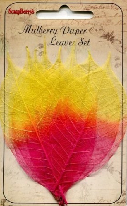 Скелетированные листочки из бананового дерева, набор 8шт, желто-красные