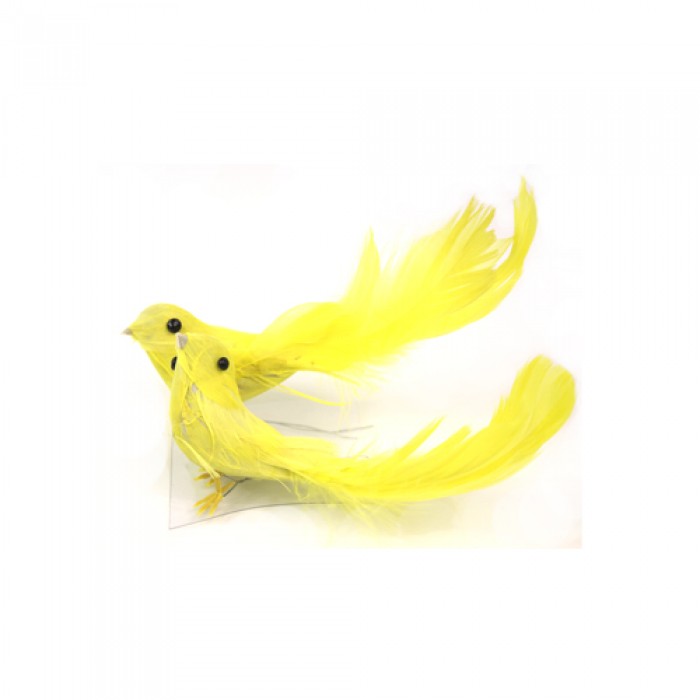 Оригинальное украшение: фигурки птичек из перьев. Фигурка имеет проволочную пружинку, которой ее можно прикрепить к стволу деревца или другому подобному предмету цилиндрической формы. При желании пружинку можно отрезать. Поставка в коробочке. В наборе 2 птички, каждая размером 13-14 см в длину вместе с хвостом.