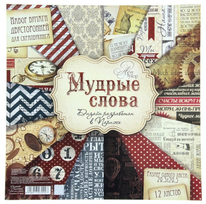 Набор бумаги для скрапбукинга "Мудрые слова" 12л. 29,5*29,5см 160гр/м2