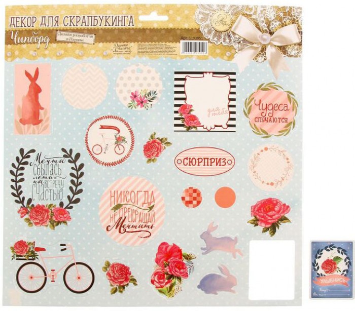 Фигурные вырубные элементы из плотного принтованного картона. Применяются в скрапбукинге для украшения скрапстраничек, открыток, коробочек, приглашений и т.д.