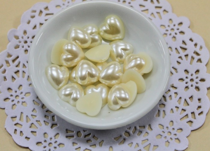Декоративные полу-бусины Бежево-перламутровые сердца 14мм., 20шт