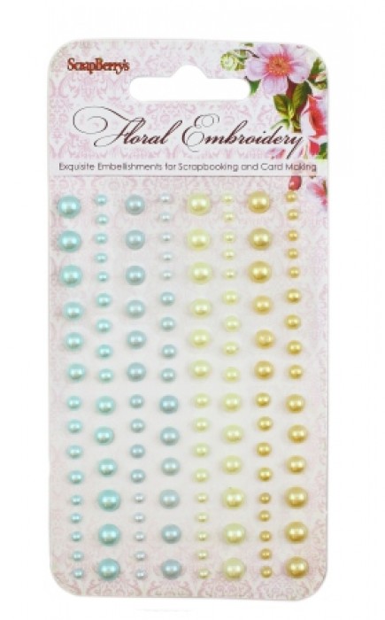Клеевые камушки и полужемчужинки 120шт, 4цвета "Цветочная вышивка 3"