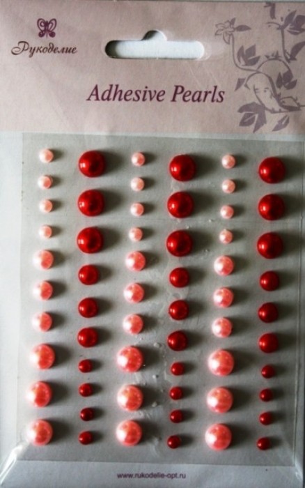 Клеевые полужемчуженки 60шт. красный, розовый