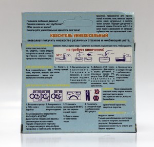 Краситель предназначен для окраски тканей из хлопка, льна, вискозы, шерсти, шелка, смеси натуральных и синтетических волокон. Подходит для ручной и машинной стирки.
