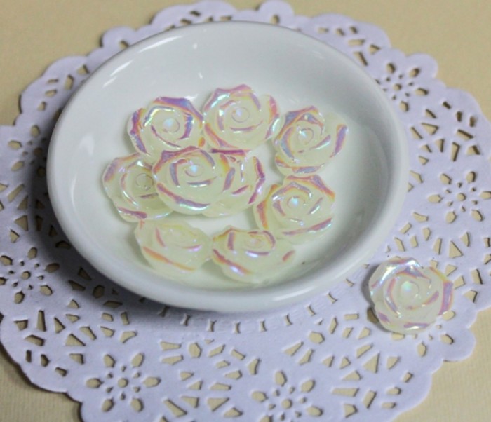 Объемные розочки белые перламутровые 10шт.