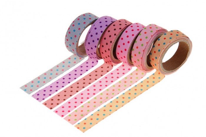 Скотч декоративный текстиль "Милый горошек" ш.1,7см намотка 1,8метра цвета в ассортименте