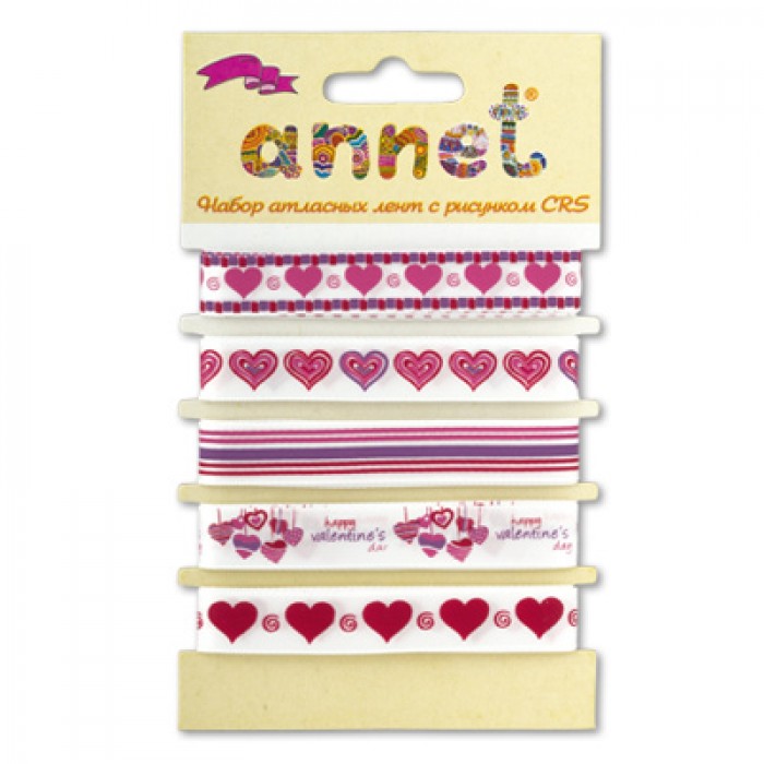 Набор атласных лент с рисунком ANNET Валентинки