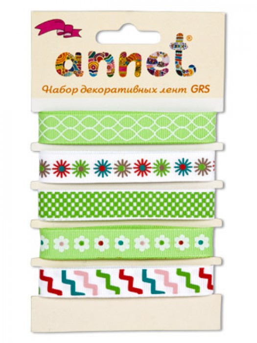 Набор репсовых лент с рисунком. В каждом наборе пять лент по 1 м с различными рисунками. Каждый набор лент "Annet" подобран в соответствии с определенной тематикой и в одном цветовом решении, что облегчает выбор лент при создании альбомов и открыток. Набор лент для скрапбукинга - это идеальное начало для того, кто только решил заняться этим направлением дизайна, а так же и для опытных мастеров.
