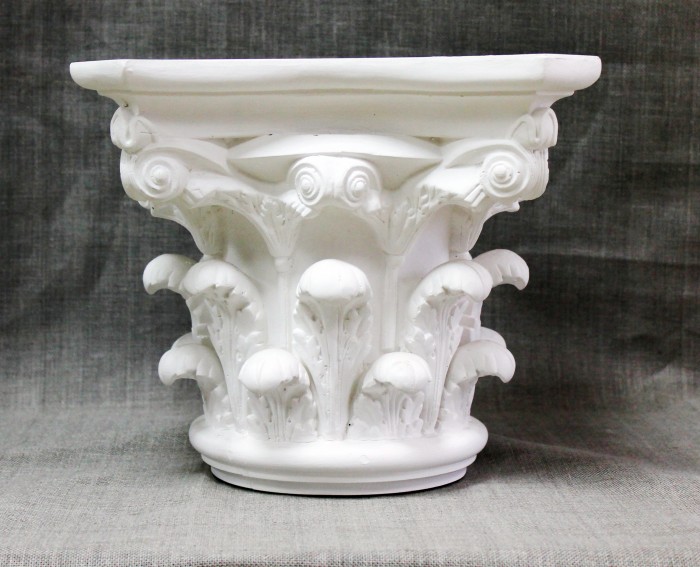 Гипсовая фигура отечественного производства, изготовлена в одной из лучших компании на рынке изделий из гипса. Коринфская капитель (капитель коринфского ордера) - это самая богатая декором капитель из трех древнегреческих архитектурных ордеров. Характерной особенностью этого ордера является колоколообразная капитель, покрытая стилизованными листьями аканта. Декоративные элементы капители очень интересны в живописном исполнении. Гипсовая фигура капители используется, как учебное наглядное пособие для художественных школ, студий, художественных и архитектурных училищ и ВУЗов. Послужит в качестве самостоятельного элемента ваших этюдов и набросков, а также будет великолепно смотреться в комбинации с другими предметами в натюрморте.