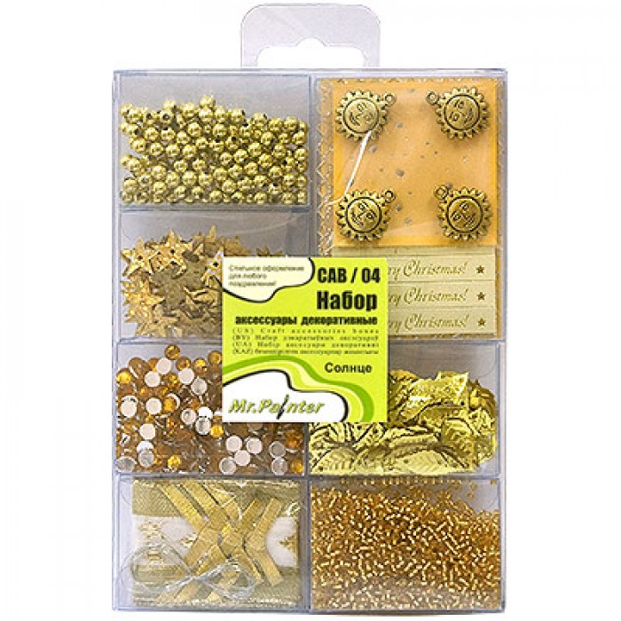 Наборы декоративных аксессуаров, объединенных одной темой или цветом. В наборе 8 видов элементов: пайетки, бисер, стразы, металлические цветы, пушистые шарики, тесьма, шнурки, наклейки и ленты.