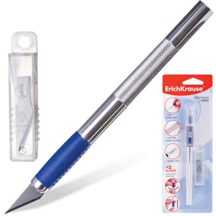 Купить Нож скальпель ERICH KRAUSE в металлическом корпусе, 2запасных съемных наконечника в Набережных Челнах вы можете в магазине «Художник», оформив заказ в интернет магазине, отправив заявку по почте, а также по телефону или в салоне магазина.