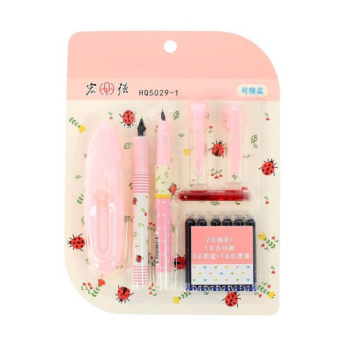 Набор 2 перьевые ручки+стиратель+набор капсул 6шт. син +1шт. красн. 20*15см