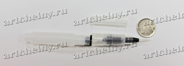 Эта кисть с резервуаром для воды создана для рисования в технике акварели. У кисточки обычные нейлоновые волокна на кончике, но ее основание служит емкостью для воды. Когда Вы не используете кисть, вода не просачивается, благодаря пробке, плотно закрывающей резервуар.