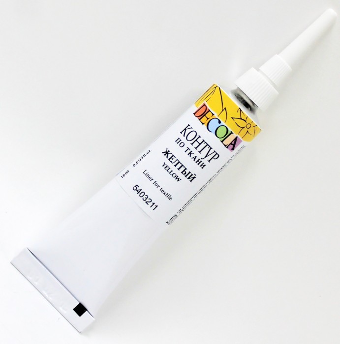 Контуры по ткани DECOLA на основе акриловых красок серии Decola. Предназначены для росписи хлопчатобумажных, шелковых и синтетических тканей. Закрепляются горячим утюгом с изнаночной стороны. Не тускнеют, светостойкие. Быстро сохнут.