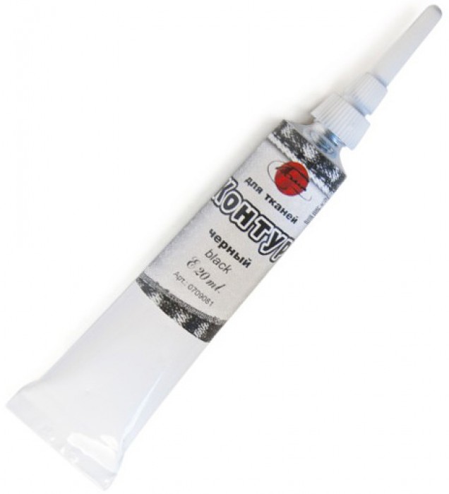 Акриловые рельефные краски «Контур» по ткани используют для нанесения контура рисунка, надписей, завершающих штрихов, а также в качестве тонкой кисти. Широко применяется контур и в точечной росписи, так называемой технике point-to-point. Обладают хорошей рельефностью и проникают в волокна ткани, прочно удерживаясь на поверхности. Акриловый «Контур» обладает повышенной вязкостью, что позволяет ему не растекаться по поверхности, сохраняя рельефность после высыхания. Меняя силу нажима и скорость движения флакона, можно менять толщину линии от тонкой до очень широкой. Контур наносится на поверхность непосредственно из тубы. Туба слегка прижимается к поверхности дозатором под углом 45 градусов, затем нажатием на тубу краска выдавливается через дозатор тонкой объемной линией. Украшенная контуром ткань - результат ручной работы, а не промышленной печати, поэтому рисунки нуждаются в бережном отношении во время стирки. При использовании машинной стирки лучше выбирать программы для тонких тканей, предполагающие температуру не выше 40 °С. Не следует использовать продолжительный отжим, это приводит к преждевременному износу рисунка. Если украшенное изделие имеет небольшой размер, лучше стирать его вручную.