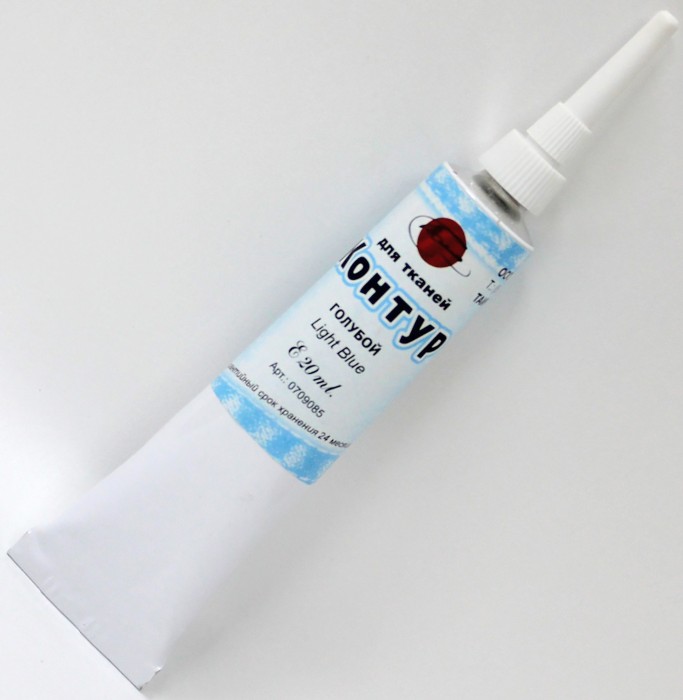 Акриловые рельефные краски «Контур» по ткани используют для нанесения контура рисунка, надписей, завершающих штрихов, а также в качестве тонкой кисти. Широко применяется контур и в точечной росписи, так называемой технике point-to-point. Обладают хорошей рельефностью и проникают в волокна ткани, прочно удерживаясь на поверхности. Акриловый «Контур» обладает повышенной вязкостью, что позволяет ему не растекаться по поверхности, сохраняя рельефность после высыхания. Меняя силу нажима и скорость движения флакона, можно менять толщину линии от тонкой до очень широкой. Контур наносится на поверхность непосредственно из тубы. Туба слегка прижимается к поверхности дозатором под углом 45 градусов, затем нажатием на тубу краска выдавливается через дозатор тонкой объемной линией. Украшенная контуром ткань - результат ручной работы, а не промышленной печати, поэтому рисунки нуждаются в бережном отношении во время стирки. При использовании машинной стирки лучше выбирать программы для тонких тканей, предполагающие температуру не выше 40 °С. Не следует использовать продолжительный отжим, это приводит к преждевременному износу рисунка. Если украшенное изделие имеет небольшой размер, лучше стирать его вручную.