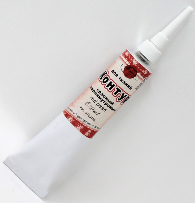 Акриловые рельефные краски «Контур» по ткани используют для нанесения контура рисунка, надписей, завершающих штрихов, а также в качестве тонкой кисти. Широко применяется контур и в точечной росписи, так называемой технике point-to-point. Обладают хорошей рельефностью и проникают в волокна ткани, прочно удерживаясь на поверхности. Акриловый «Контур» обладает повышенной вязкостью, что позволяет ему не растекаться по поверхности, сохраняя рельефность после высыхания. Меняя силу нажима и скорость движения флакона, можно менять толщину линии от тонкой до очень широкой. Контур наносится на поверхность непосредственно из тубы. Туба слегка прижимается к поверхности дозатором под углом 45 градусов, затем нажатием на тубу краска выдавливается через дозатор тонкой объемной линией. Украшенная контуром ткань - результат ручной работы, а не промышленной печати, поэтому рисунки нуждаются в бережном отношении во время стирки. При использовании машинной стирки лучше выбирать программы для тонких тканей, предполагающие температуру не выше 40 °С. Не следует использовать продолжительный отжим, это приводит к преждевременному износу рисунка. Если украшенное изделие имеет небольшой размер, лучше стирать его вручную.