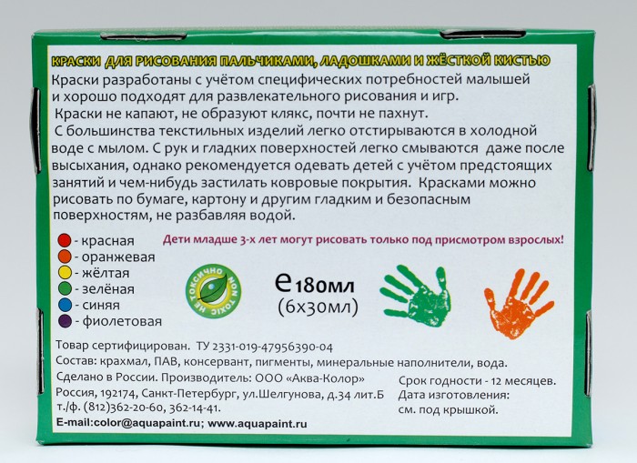Оформление набора «Лучшее детям» разработано специально для маленьких детей. В наборы входят пальчиковые краски ярких цветов. Краски безопасны, хорошо разносятся, смешиваются друг с другом, легко состирываются с одежды и смываются с кожи.