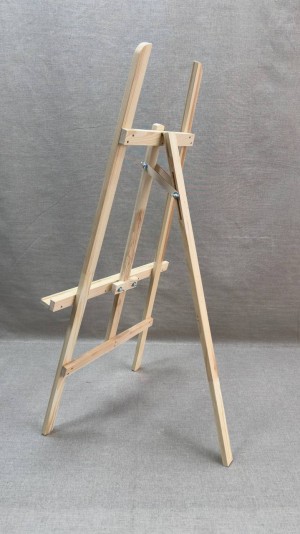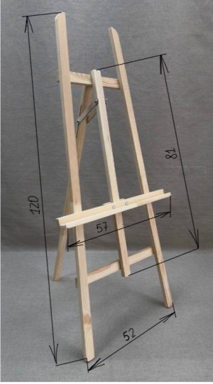 «Мольберт ЛИРА» – это профессиональный студийный деревянный мольберт типа ЛИРА. Холст на подрамнике легко устанавливается под необходимым углом, при помощи подвижной задней ножки мольберта. Для фиксации угла наклона холста используются винт с головкой типа «барашек». Следует иметь в виду, что мольберт не позволяет устанавливать холст под большими углами наклона или горизонтально, что несколько ограничивает сферу его применения при работе с акварелью. Хорошо продуманная конструкция мольберта и значительные габаритные размеры обеспечивают хорошую устойчивость холста во время работы. Мольберт может складываться для хранения в вертикальном положении, занимая немного места. Высота 120 см.