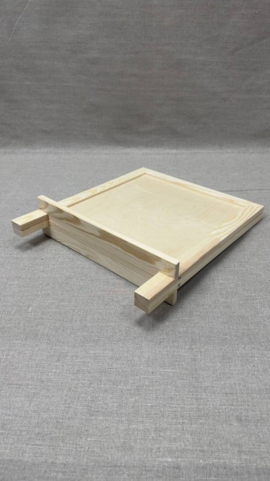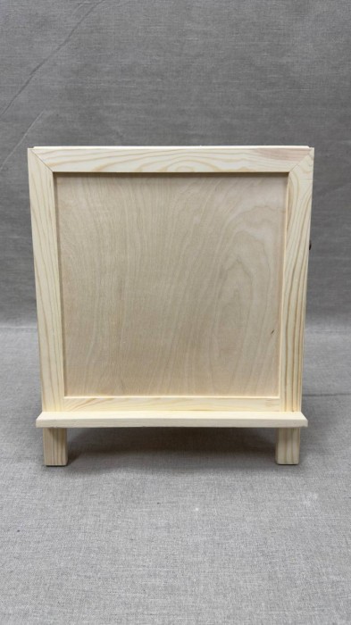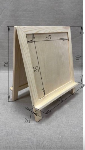 Мольберт настольный - настольный деревянный мольберт, предназначенный для работ красками и графическими материалами, не требующий планшета. Угол наклона мольберта изменяется при перемещении задней ножки. Простая конструкция и удобство использования мольберта делает его незаменимым приобретением для ученика детской изостудии. Конструкция имеет две рабочие поверхности с противоположных сторон, что делает его возможным в использовании сразу двумя учениками.