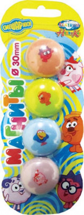 Очаровательные магнитики с любимыми героями из мультфильма «Смешарики» украсят дверцу холодильника или станут незаменимыми помощниками для ребенка на металлической доске. В наборе 4 магнита, каждый из которого имеет свой цвет и изображение известного персонажа.
