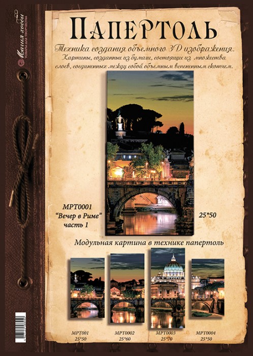 Купить Папертоль "Вечер в Риме" часть1" 25*50см. в Набережных Челнах вы можете в магазине «Художник», оформив заказ в интернет магазине, отправив заявку по почте, а также по телефону или в салоне магазина.