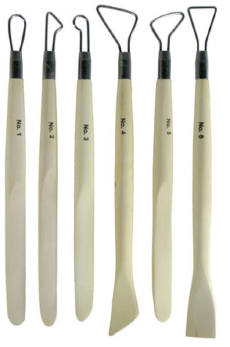 Стеки скульптурные с металлической петлей на конце используются при работе с глиной, пластилином, нетвердым пластиком или другими подобными по консистенции материалами. С помощью этих петель обрабатываются небольшие скульптуры, можно снимать с деталей лишние части. Кроме того, петли используются для полировки изделий. В наборе 6 штук стеков разного размера. Стеки односторонние, с одной стороны - петля, сделанная из фигурной металлической проволоки, закрепленной на рукоятке; с другой - ручка деревянная полированная.