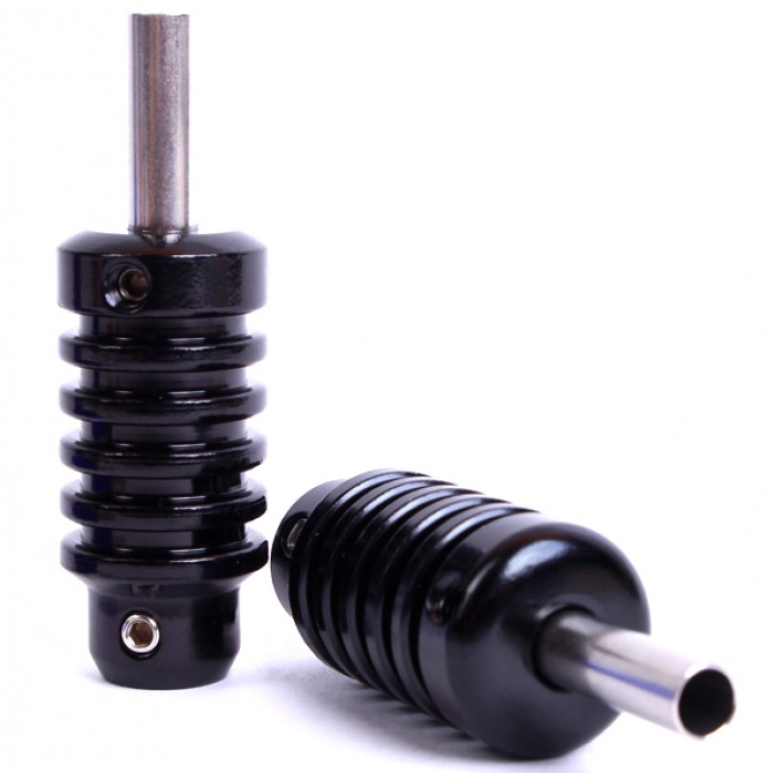 На первый взгляд держатели для татуировочных машинок ни чем не отличаются друг от друга. Однако это не верно. Разница в материале, весе и других параметрах, пусть и не бросается в глаза, зато оказывает большое влияние на работу тату-мастера. Диржатели, изготовленные из анодированного алюминия или сплавов на его основе, отличаются одновременно легкостью и высокой устойчивостью к воздействию коррозии. Благодаря этому они, с одной стороны, не вызывают утомления мышц в процессе работы, а с другой - могут безо всякого ущерба для себя многократно проходить полный цикл стерилизации с использованием автоклава. Благодаря этому гигиена в Вашем тату-салоне всегда будет находиться на высшем уровне. Алюминиевый держатель отлично поглощает вибрацию тату-машинки и позволяет снизить нагрузку на пальцы во время татуировочных работ. Этот держатель имеет два торцевых винта, которые регулируются при помощи шестигранника.